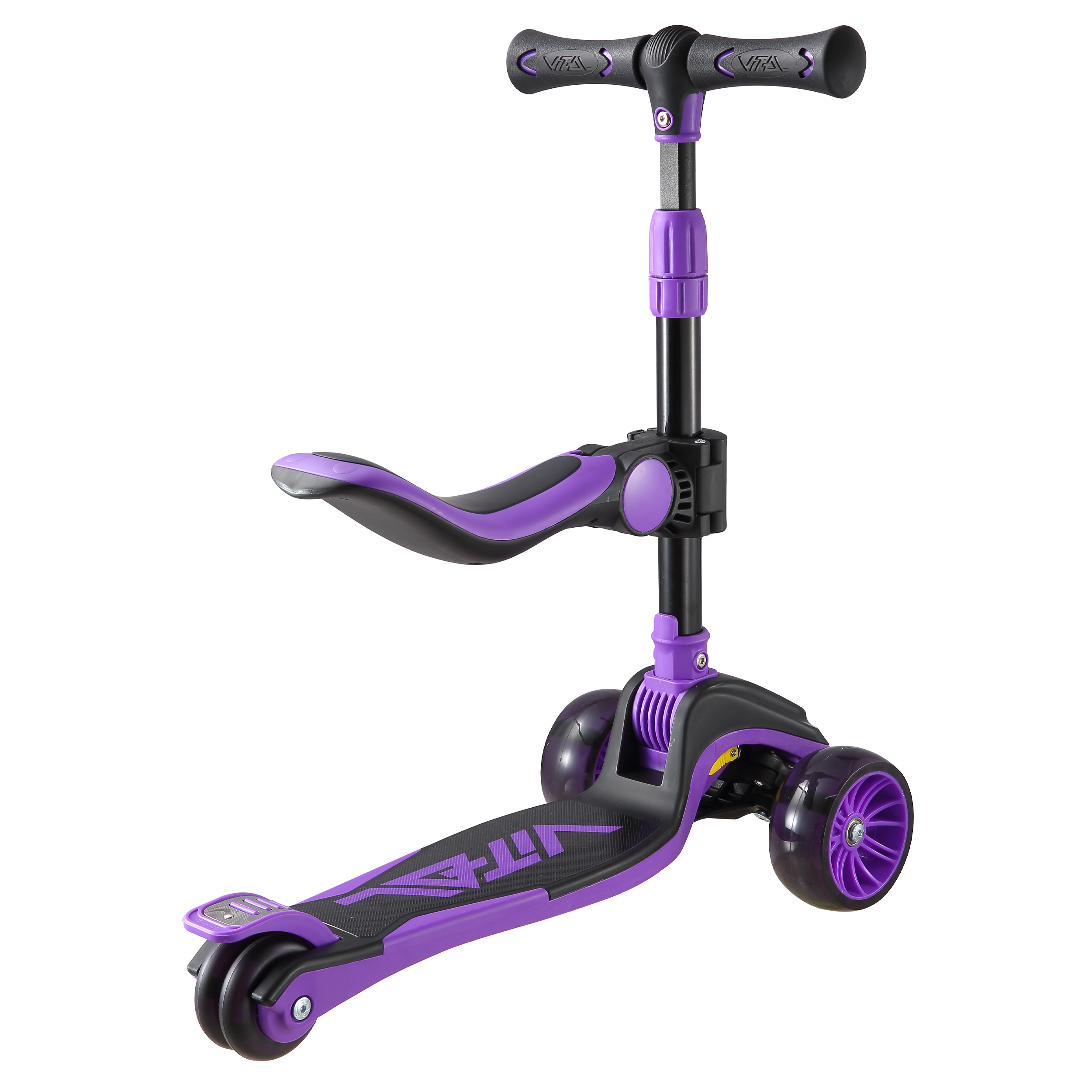 We engineered TYKE to help you avoid the cheap, temporary feeling of many kids’ scooters. While similar, ours focuses on the practical details that make their first experiences riding fun, safe and worry free above all else. Easy to use tool-free adjustability, bar height and foldability and with attachable seat. The included seat gives the TYKE a stand or seated option and the perfect place for them to rest up.