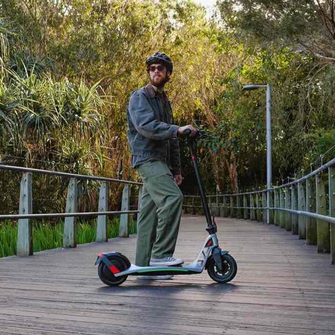 Travel Buddy: The V-10 is the compact folding e-scooter that can explore with you. The secure stem lock gives the best of both worlds with strength and flexibility all in one uncompromising package.