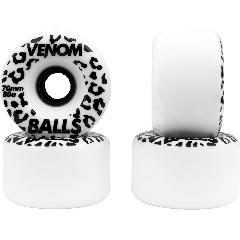 70MM BALLS - The 70mm Balls are the latest round lipped, center set, flippable freeride wheel from Venom. Poured with our fast rolling, smooth sliding Fishscale Formula and stone-ground for a smooth slide right out of the box, the Balls are a good choice for everyone from beginners that want a little more speed to experienced freeriders tired of wearing their wheels out quickly.