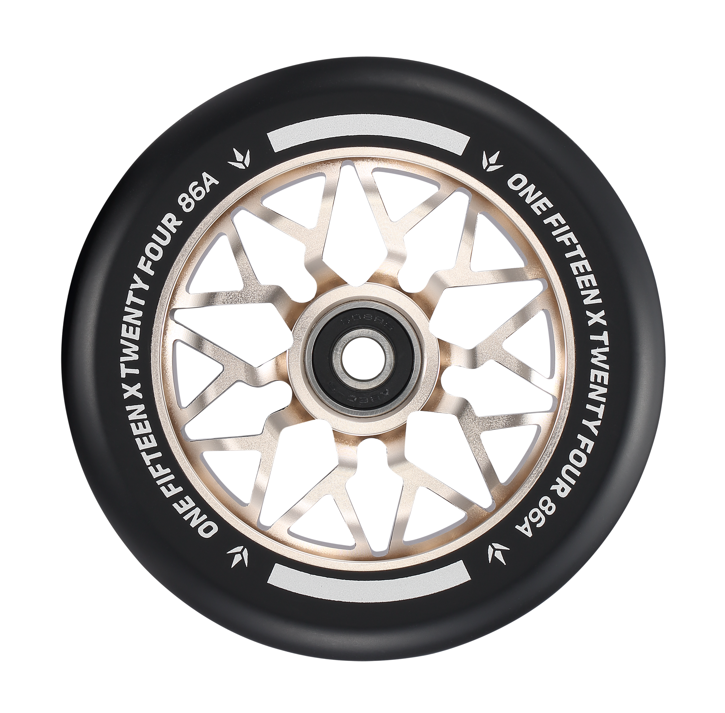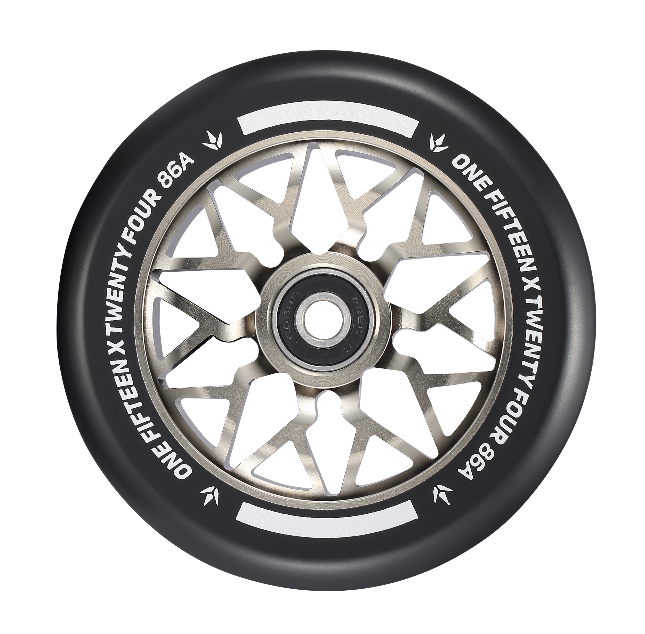 The Sector wheels are sold in pairs, and come in at 115mm in diameter, 24mm wide core and urethane to allow for seamless grinding. Compatible with any fork allowing wheels up to 125mm
