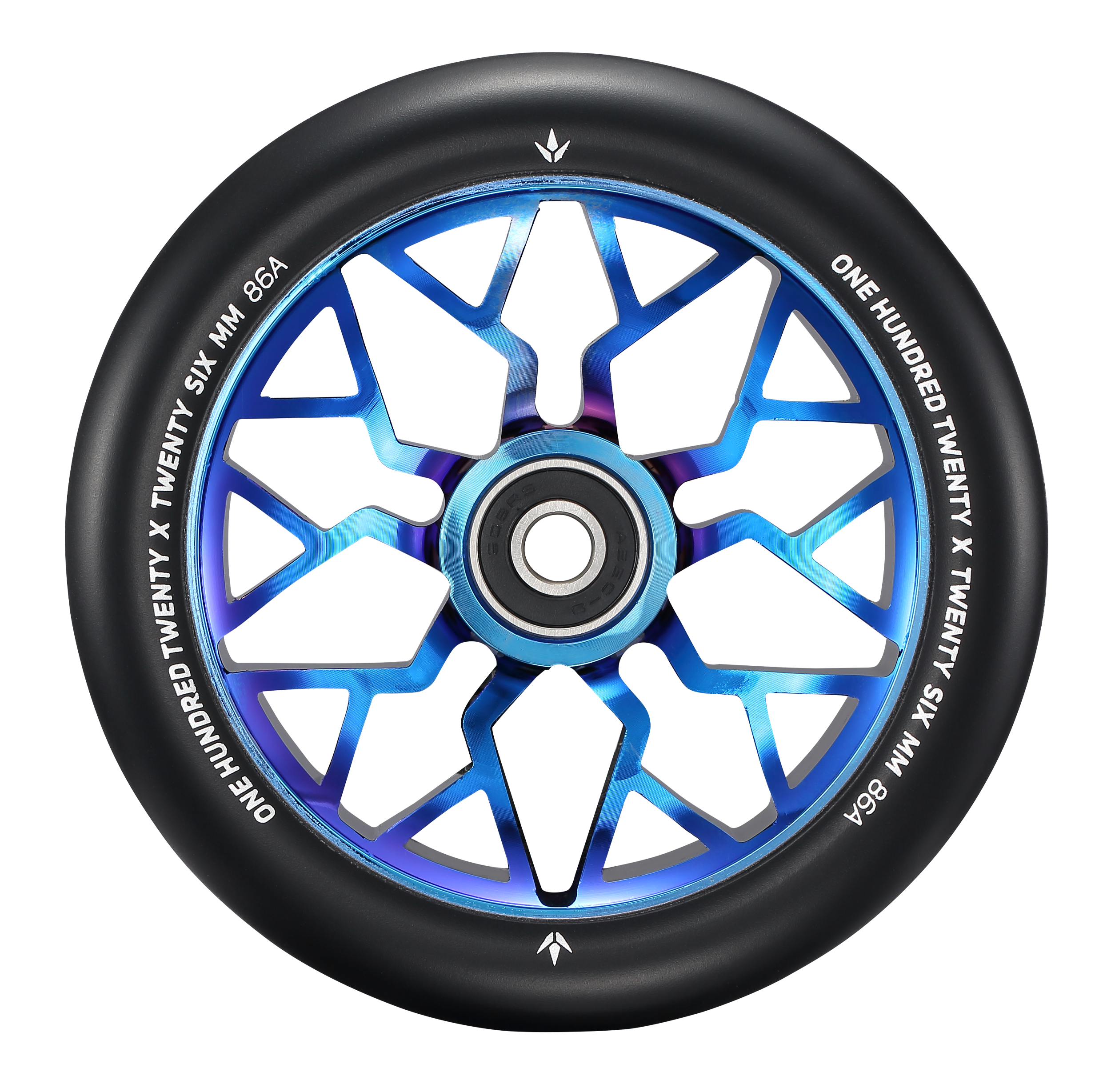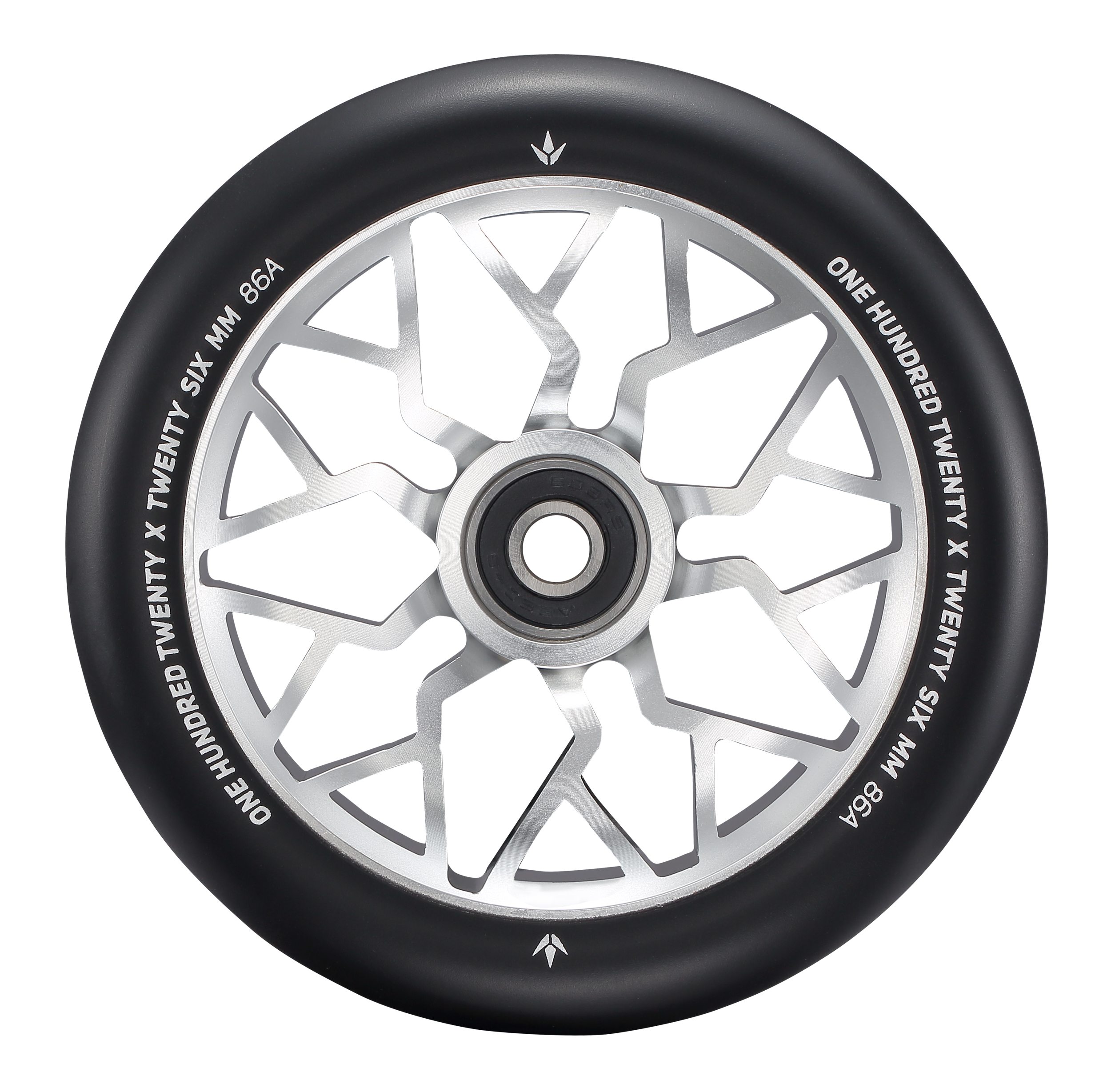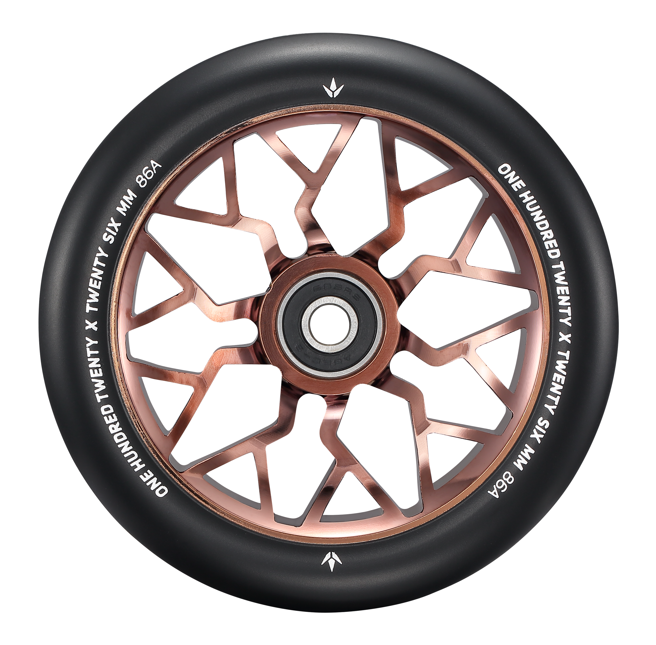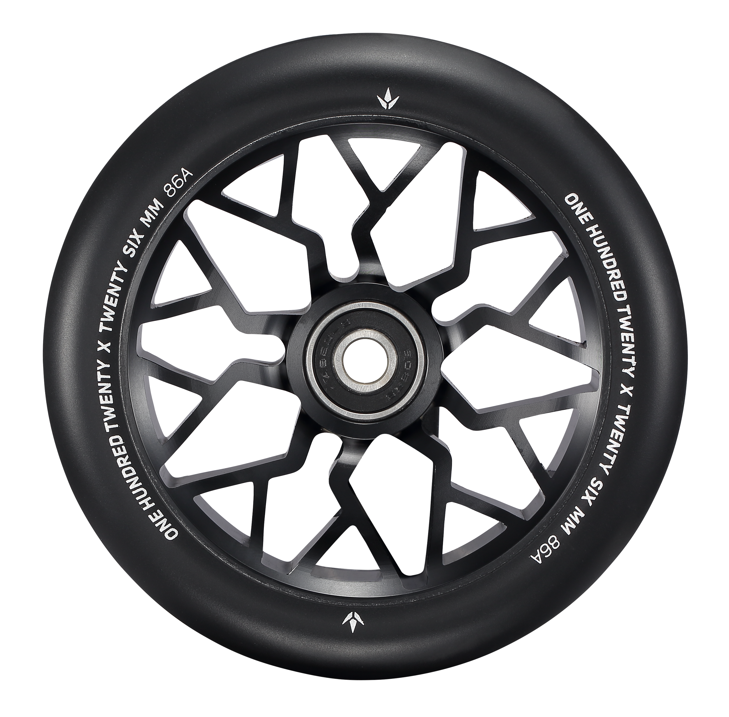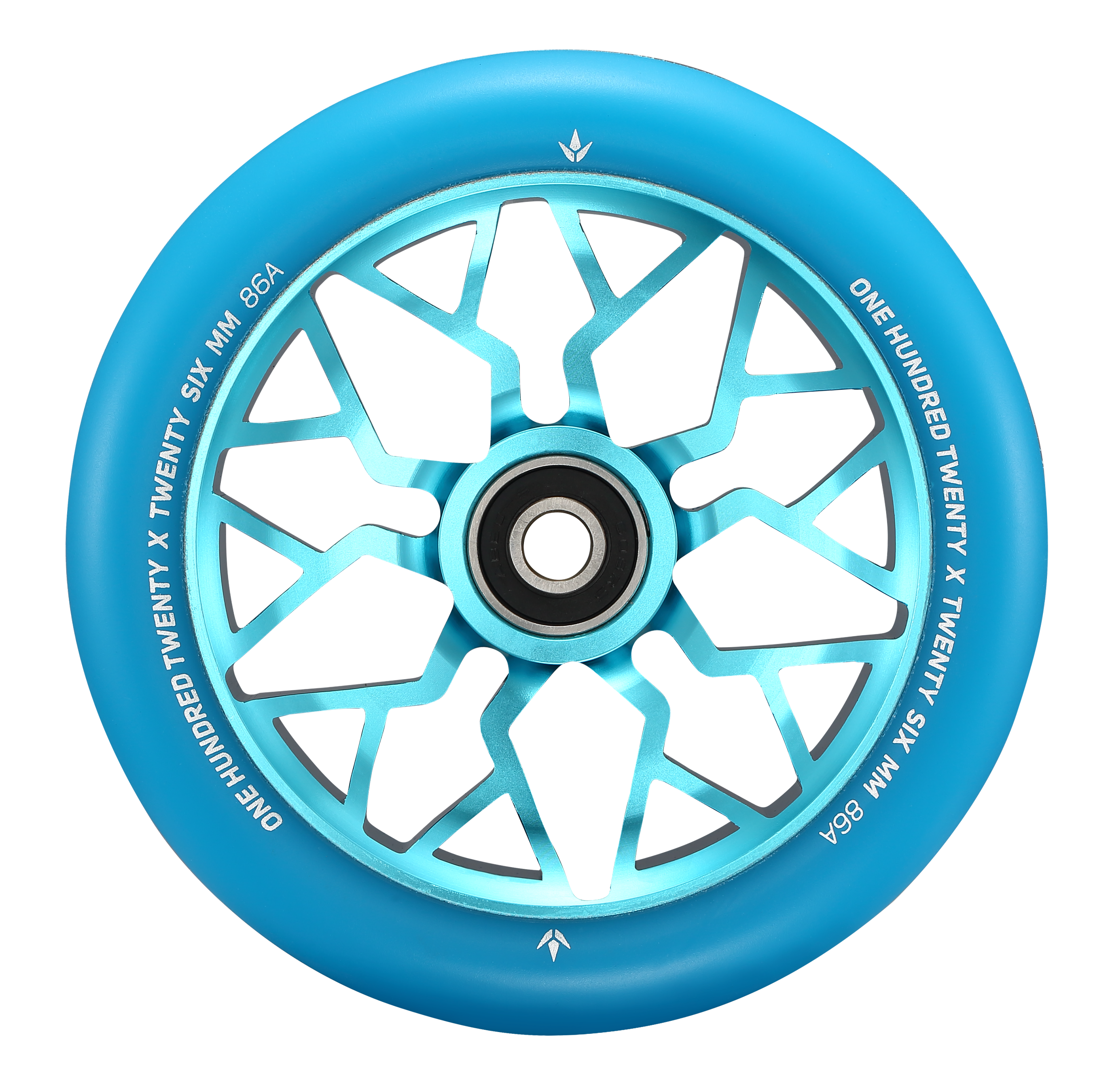 The Sector wheels are the newest instalment of our aftermarket range. Currently featured on our PX One completes. The Sector wheels come in at 120mm in diameter, which allows for higher distance off the ground, preventing deck scrapping. 24mm wide at the core, but 26mm wide at the urethane to protect the core. Compatible with any fork allowing wheels up to 125mm