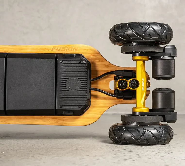Aesthetics meet engineering in the Fusion’s premium bamboo deck, a compact, lightweight design with a rich, natural finish and precision laser-etched detailing. The deck isn’t just stunning, it’s versatile too. Riders can choose between two battery configurations: the 12S 3P (648Wh) for maximum range, or the 12S 2P (432Wh) for a lighter, more agile setup, tailored to how you ride.